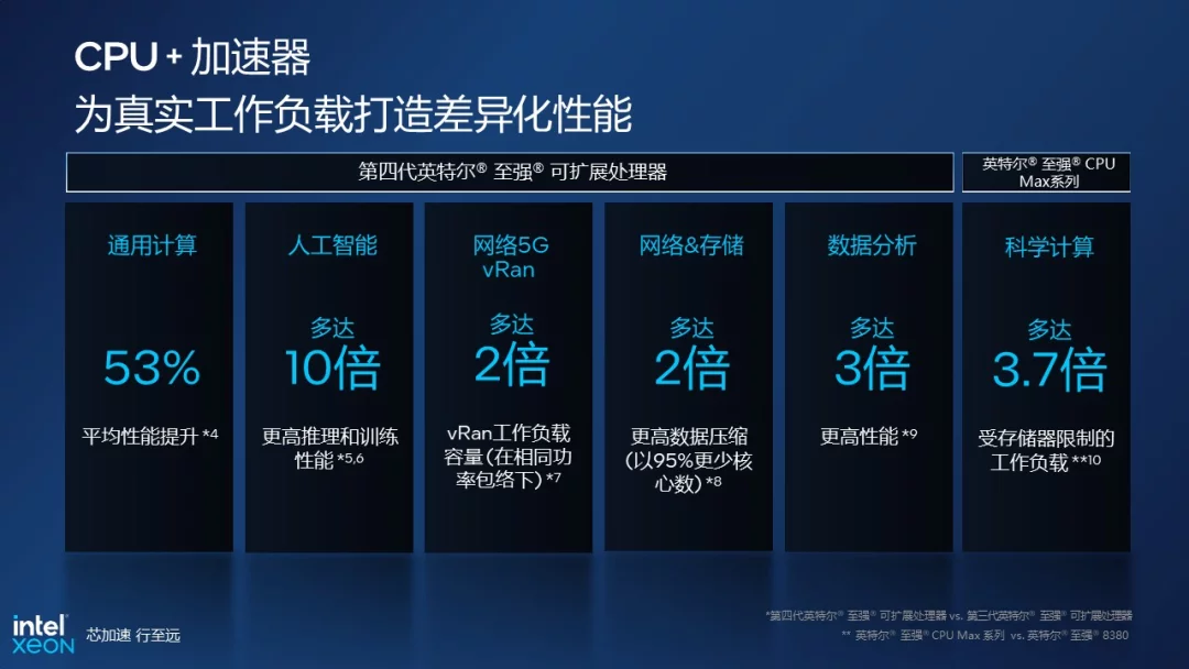 不难看出,英特尔将持续与客户及产业伙伴密切合作,基于全新的第四代英特尔® 至强® 可扩展平台,大规模提供差异化解决方案和系统,助力客户解决算力挑战,共同实现可持续发展。